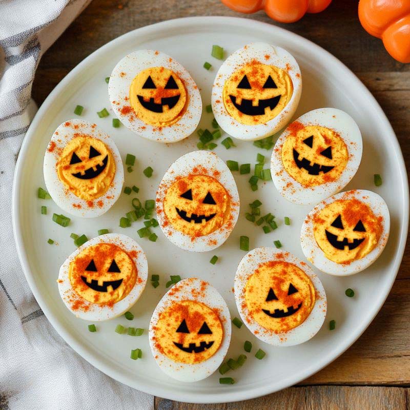 Deviled eggs, but Halloweened. Slice the egg in half and draw jack o lantern face on it with food marker. They look evil and taste elite.