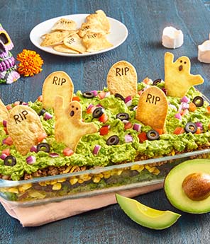 8. Graveyard Tombstones Taco Salad Dip