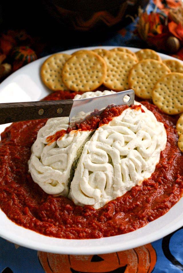 4. Zombie Brain Dip (Skull Bread Bowl)